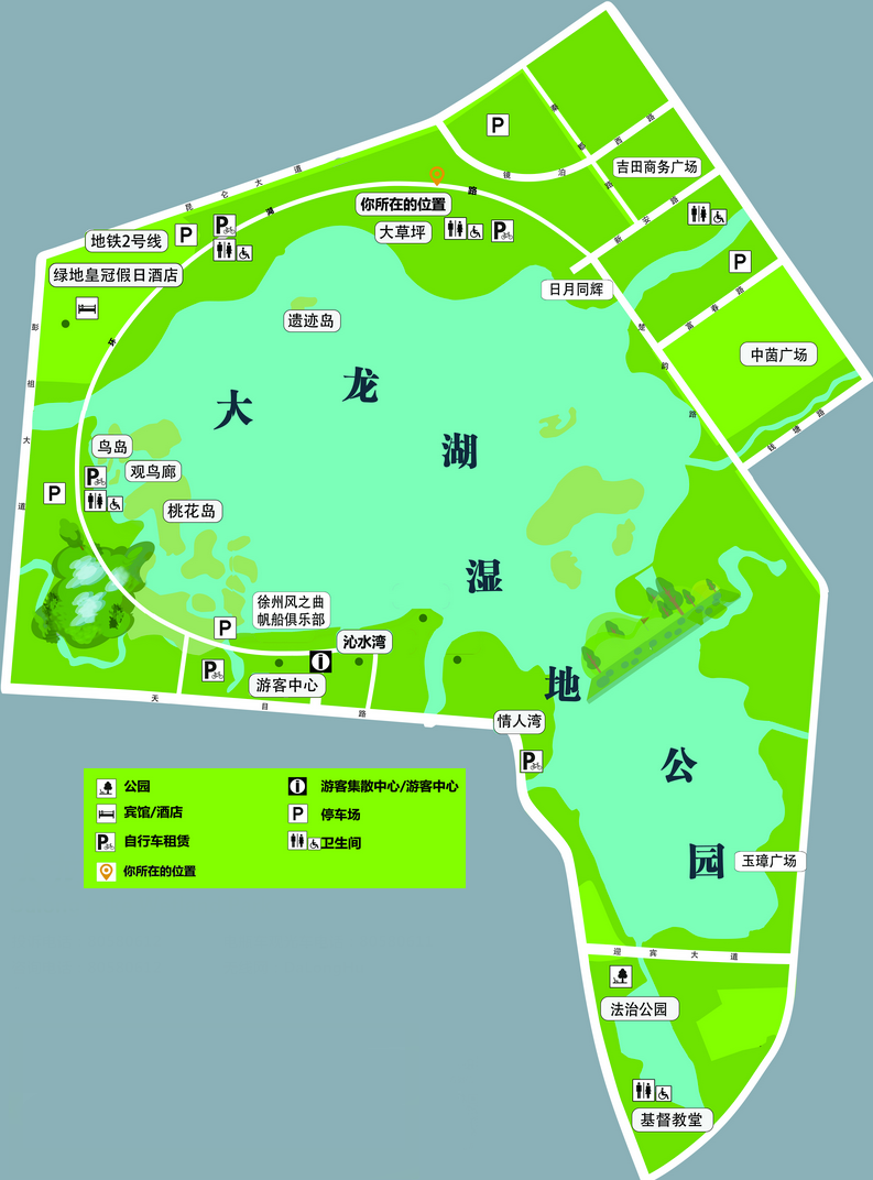 拖龙山森林公园,徐州城市规划馆、基督教堂、顺堤河风光带、河口公园、沁水湾国际风情街、婚博园、桃花岛等特色景观。