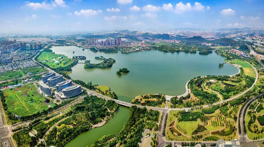 大龙湖湿地公园,前身为大龙口水库。总面积6.37平方公里,背依拖龙山,绿地覆盖率达到57.4%。由大龙湖和九座小岛组成。景区绿化面积广阔,水质清澈。也是新城区的自然氧吧和重要的旅游休闲场所。这里动植物种类繁多,有各种鱼类40余种,植物150余种,吸引了80余种鸟类栖息繁衍。