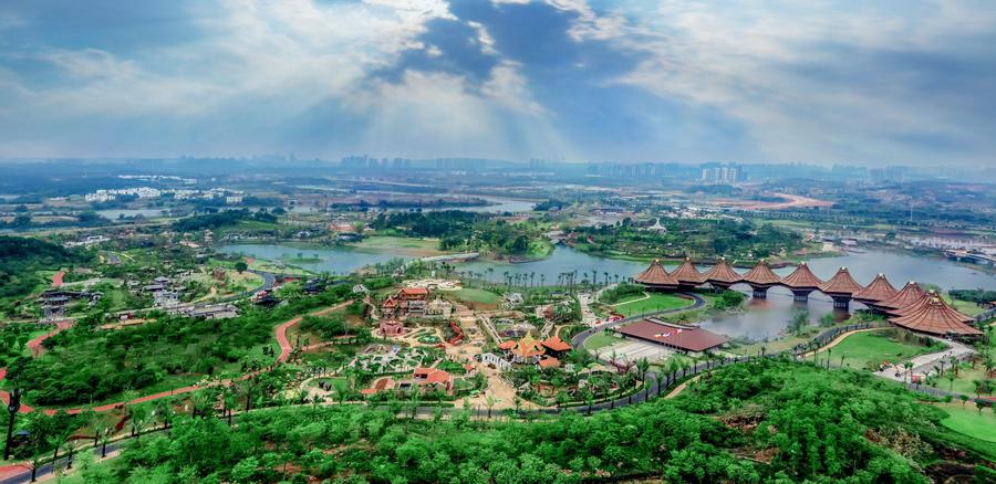 南宁园博园以“特色南宁铸就不一样的园博园”,打造“三湖六桥十八岭、一阁四馆两中心、八十展园八大景”格局。整体地形地貌丰富多变,丘陵起伏,江水蜿蜒,植被良好,既具有山、水、林、泉、湖等优越的造园条件。
