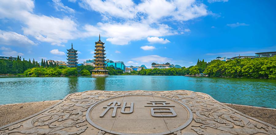 位于桂林桃花江与漓江的交汇处,景区主要景点有象鼻山、水月洞、象眼岩、普贤塔、三花酒窑、爱情岛、云峰寺太平天国革命遗址陈列馆等,著名的象山水月洞含唐宋文化历史石刻22件,文字3065个,是唯一一个含唐宋时石刻文字最多的水洞。