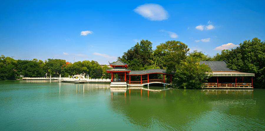 是四个内湖当中唯一一个人工挖掘的湖。它在宋代时上面建造着一排排的兵营,而后来,桂林市为了要将江与湖连通,于是在这里挖掘了一个人工湖,这个湖因为邻近木龙洞,故名“木龙湖”。木龙湖是一个结合了自然山水与历史文化的景区,因为在木龙湖北侧遗留了宋代东镇门、宋城墙遗址等历史人文景观,于是建设了许多具有宋代建筑气息的古建筑群落的景点。木龙湖景区是依照了宋代画家张择端《清明上河图》当中的一角修建,宋代建筑群大气典雅,整个湖区如上了色彩的水墨画,再配上各种少数民族的舞蹈表演,让您仿佛置身于画中,如梦如幻。