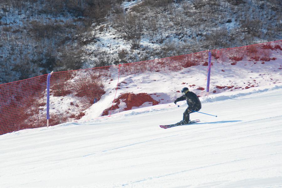 中级雪道长约980米,宽约30米,坡度13%-15%-11%-8.6%