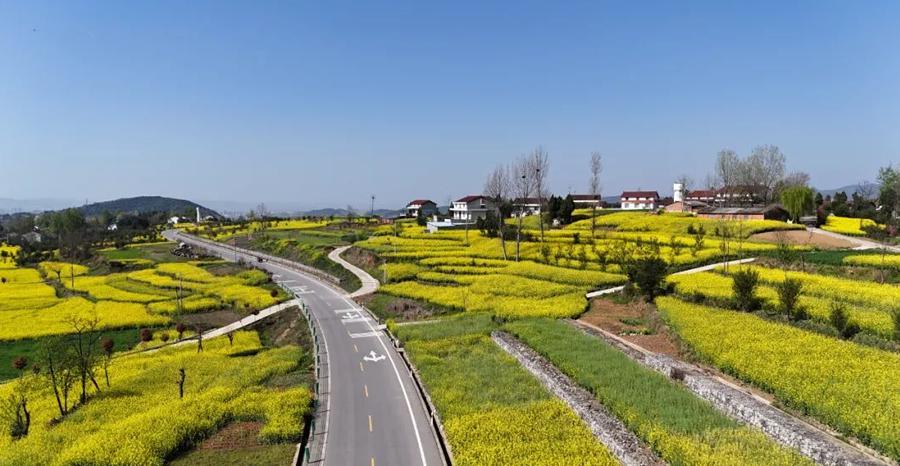 田野间盛开的油菜花,田埂上开得正好的桃花,纤细碧绿的垂柳,以及远远能看到的农家小院和青山绿树,共同构成一幅色彩明艳的画。无论你是路过,还是专程探访,都会被这抹艳丽的风景给迷醉。