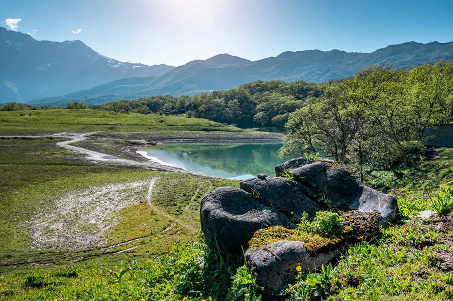 海拔3240m,和黑龙池上下呼应,最长约300米,宽180余米,池水清澈,池的四周为草甸、草坡和茂盛植被。