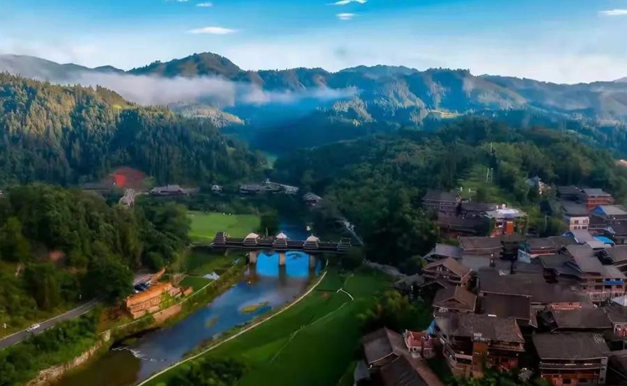 原生态自然古村落景观,被称为“世界楼桥之乡”,程阳八寨景区拥有2000余座吊脚楼、8座鼓楼、5座风雨桥,拥有中国最大侗族木构建筑博物馆的美誉,举世闻名的世界四大历史名桥之一的“程阳风雨桥”就坐落于此。郭沫若先生为程阳永济桥题诗“艳说林溪风雨桥,桥长廿丈四寻高,重瓴联阁怡神巧,列砥横流入望遥”,赞誉其集桥、廊、亭于一体,合实用、审美、信仰于一身,是侗乡造型最美、传颂最多、民族特色最浓郁的风雨桥。国家非物质文化遗产—侗族木构建筑营造技艺在这里传承发展,侗族工匠身怀绝技,他们不用图纸、不用铁钉,代代构造的古老侗寨,走过风雨,历经千年仍然向世人展示最华丽的身姿。