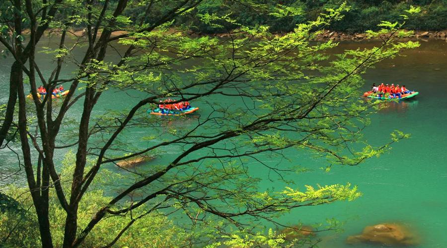 感受“浙江第一漂”之称的浮伞漂流。