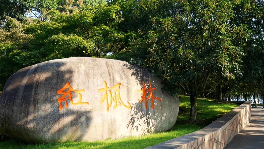 红枫林,位于金鸡湖景区北入口附近的一个开放式公园,总数超过1860株,由于种植了500多颗古老的红枫而得名。入口处的大石头上便刻着红枫色的“红枫林”三字。红枫林内建有宽敞的人行步道,小土丘上还设有凉亭可供休憩。秋天的红枫林景致迷人,片片枫叶被阳光照耀得如同燃烧的火焰。林内有树有花、有亭有阁,有池塘有小桥,还有钟楼等别致雕塑等。