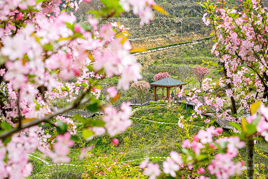 花千谷、海棠春晓、紫云禅寺、紫藤长廊、茶花园、紫薇园、林下花海、茶花岭、七彩杜鹃岭、紫薇长廊、花立方展馆、月季园、绣球花园等多个主题花园,实现了“月月有花开、季季景不同、天天都精彩”的景观效果。景区依托英山深厚的人文资源,打造集红色文化、毕升文化、民俗文化、时尚休闲文化于一体的文化格局。