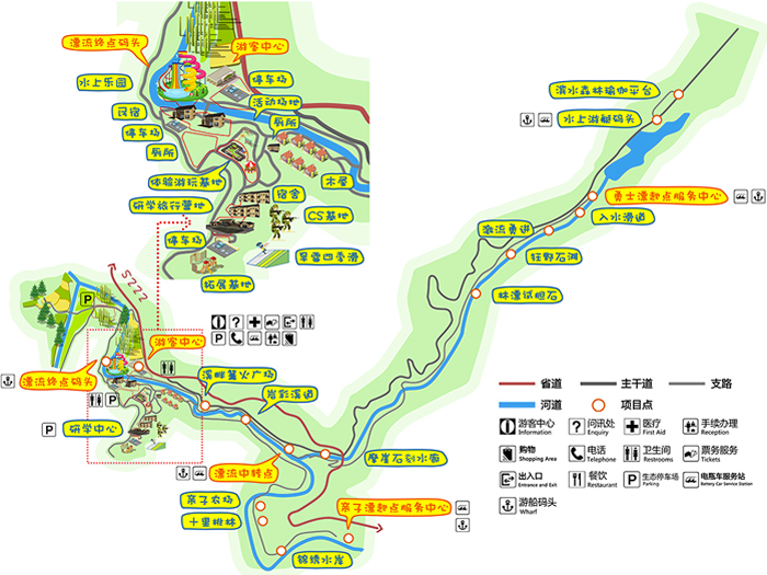 水大景美、河道长3.5公里,落差60米,适合一家三口亲子游。