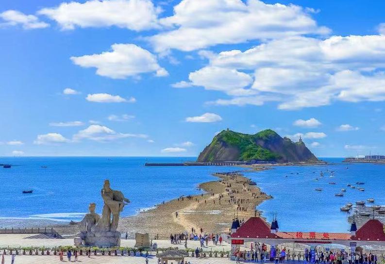 天桥;从海岸到笔架山岛有一条长1620米30余米宽“天桥”是一条潮汐冲击而成的连接海岛与陆地的天然卵石通道,其神奇之处在于会随着潮汐的涨落而时隐时现。堪称“天下一绝”。