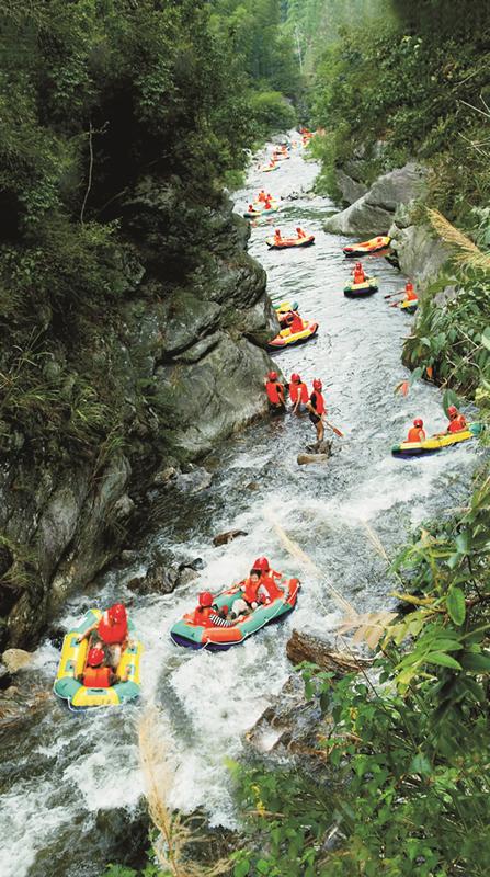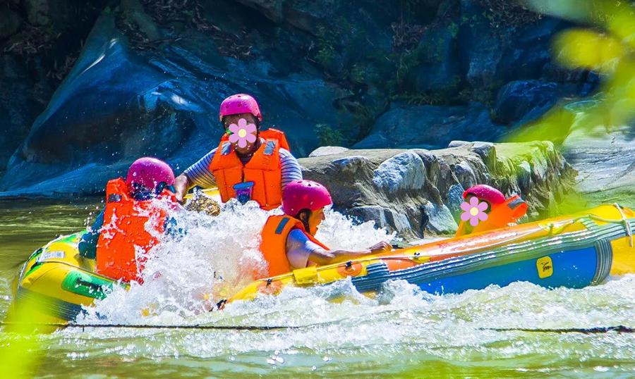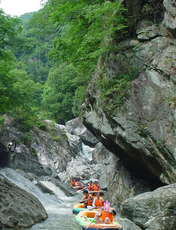 漂流峡谷内峰峦叠翠、奇石林立、林木繁茂、水质清澈、飞瀑成群、风光迷人。整个漂流过程有惊无险,漂流途中还有补给站,提供休息和补给服务。漂流后还有热水澡和休息区域等。漂流时期为每年的4月至10月,夏季是漂流的最佳时节,此时景区平均气温在24~28摄氏度之间,素有“避暑不让承德,纳凉不让庐山”之美誉。