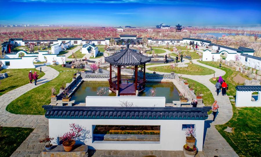 占地1560亩苏北最大的梅园。梅树栽种规格高、规模大,共栽种梅树22018棵,含4大花系、11大品种,主要有红梅、美人梅,绿鄂梅等。在景区西部,有一棵树龄达369年的梅树,因其树姿古朴优美,取名“梅后”。