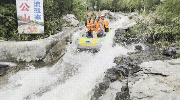 A段(猛士漂)从督公山上腰树林中盘旋而下,落差29米,曲折回环,惊险刺激,尖叫不断。