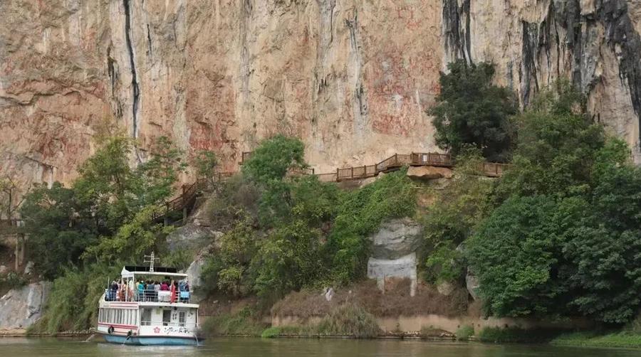 被称为“岩画活的博物馆”是左江流域岩画群的代表,因悬崖上有雄伟壮观的两千多年前骆越先民所作的图画而闻名世界,也是目前为止中国发现的单体较大、内容较丰富、保存完好的一处岩画。与山水辉映,游乘船、观岩画。