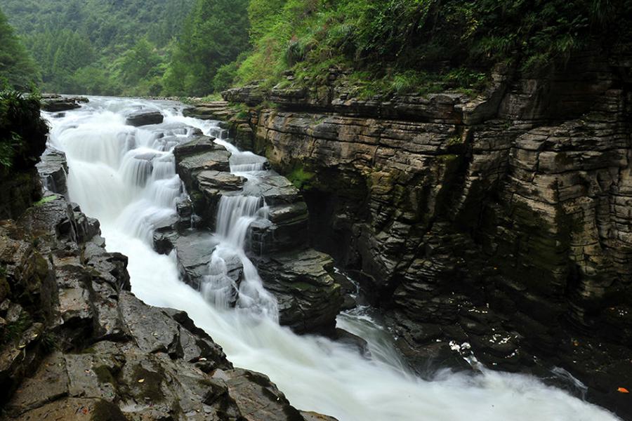 峡谷漂流全长5.8公里,落差260米,河道内怪石林立,碧水清澈,灌林密布,风光迷人,漂流以充足的水源、原始幽峡的风光,由无数个小落差组成,安全刺激,激流闯滩、劈波斩浪后到达漂流终点。