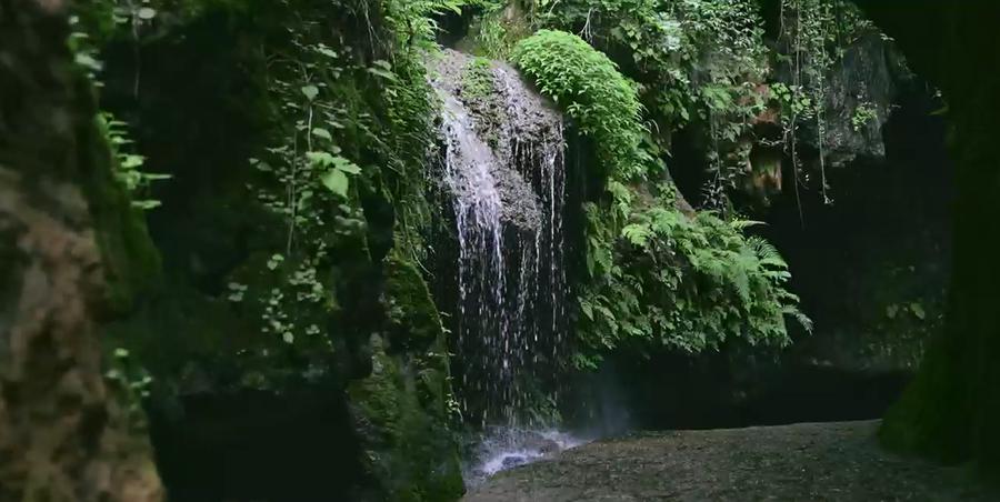 进入峡谷的尽头,便可看到一条飞瀑,从洞口处倾泻而下,好似一片轻纱从山石间飘落,升起银色水柱,形成潭中礼花。相传此处为伏牛和黄花公主在此处飞升仙班,故当地人称为“通天洞”,三国时期,曹洪奉命至此屯军练兵,凿泉引水,清澈之水自洞中倾泻而下,形成壮美“通天瀑"。