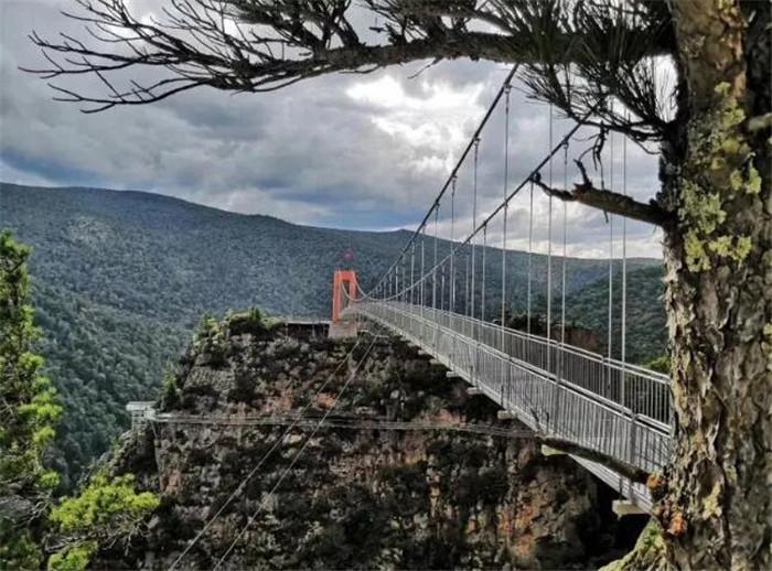 被称为龙江第一玻璃吊桥,位于鸳鸯峰景区两段绝壁之间,长188米,宽3米,高288米,在桥上远望繁茂森林美景。