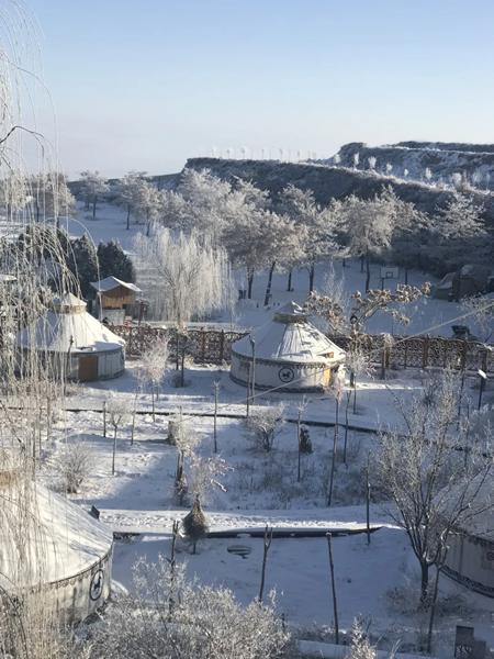 雪场里“陇山小院”有蒙古包,主要为游客提供开锅羊肉、火锅鸡、椒麻鸡、特色鱼火锅等。