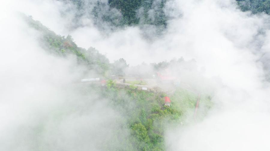 其高达百米的瀑身,悬挑崖壁,一瀑三叠,奔腾直下,空谷雷鸣,百鸟不惊,倾宇罕见,故有诗赞曰:“漫将白练说匡庐,此更垂空任云舒。罅里惊飞帘万丈,动魄还在雨晴初 ”。