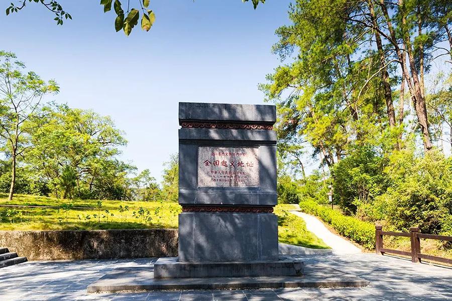 景区由金田起义地址、太平天国历史遗迹及金田起义博物馆组成,是全国红色旅游经典景区,景区以遗址保护、风门坳古战场、犀牛潭等多处遗址,博物馆以文物、壁画、艺术作品及声光电相结合的形式向游客生动展示历史文化。