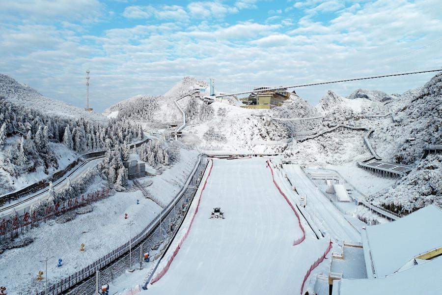 六盘水梅花山国际滑雪场,每年从11月下旬至第二年四月,雪质优良雪期长。滑雪场占地面积约9.17万平方米,总长约1880米。分为高、中、初三级赛道。