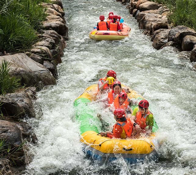 尧山天河漂流水质清澈,河道刺激的景观式漂流,河道落差明显,急流险滩又有平湖深潭。238米落差,3小时最长漂时,其中漂流河道长约800米的地下暗河,成为漂流爱好者的新宠。如在画中游的惬意美景,深受喜爱。