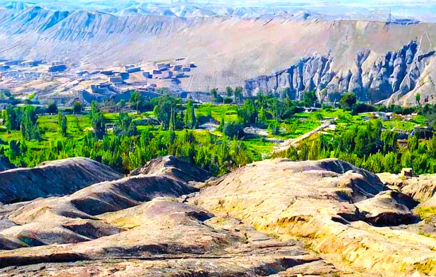 葡萄沟的主要水源为高山融雪,沟内溪流环绕,水质纯净。沟谷西岸,悬崖对峙,崖壁陡峭,犹如屏障。而沟谷内则绿意盎然,葡萄架遍布,葡萄藤蔓层层叠叠,四周是茂密的白杨林,花草果树点缀其间,农家村舍错落有致地排列在缓坡上,形成了一幅优美的画卷。