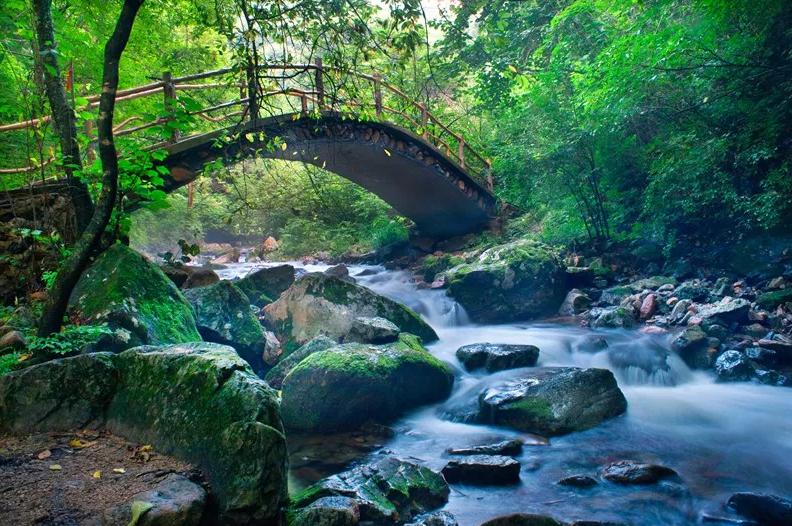 森林覆盖率为90%,植被完好,生态原始自然,是一个秀美的山水型自然风景区。在炎热的夏季谷内青峦叠翠,轻风习习。溪水峰回路转或急或缓,微小的落差造成数不清的大小瀑布,如珠链、如绸缎,清澈的流淌在谷内长满青苔的圆石、枯木之间。