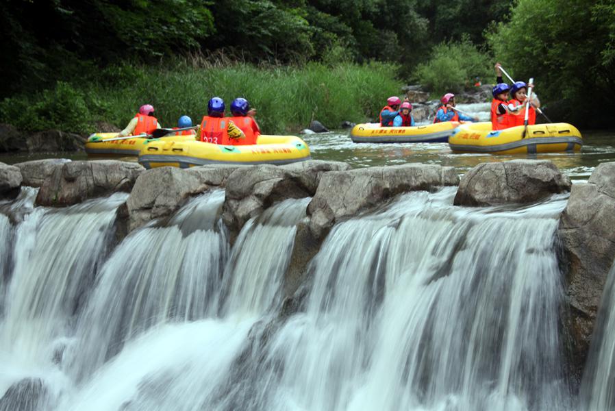 有西大门和东大门,西大门不远处就是漂流的起点,漂流的终点位于景区的东门的附近。集“岩洞漂流、暗河漂流、峡谷漂流、瀑布漂流、回旋漂流”五大特色于一体,漂流河全程6公里,穿越3处穿山岩洞,经过2处回旋漂流,飞跃白龙瀑、九曲瀑、大淙瀑。漂流水道设计的非常刺激。除了漂流,游客在景区内还可以沿着登山步道,从沸水潭到达龙泉沟,全程约5公里。