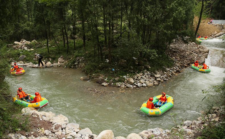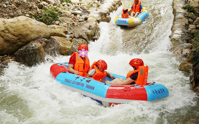 以其惊险刺激、畅快淋漓的特点而备受游客喜爱。漂流河段全长5.8公里,总落差高达300多米,冲浪达120多处,长滑道达220米。约2.5小时的漂流,游客在漂流过程中可以穿越大小险滩,体验激浪带来的刺激与快感。河道两岸的原始林木盘根错节,天然河道惊险奇骏。刺激的漂流体验和完善的设施服务而备受游客喜爱。无论是寻求刺激的年轻人还是寻求放松的家庭游客,都能在这里找到属于自己的乐趣。