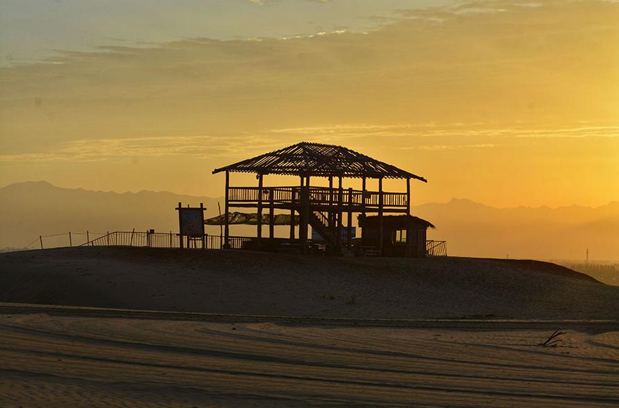 登上观日台,这里是黄沙古渡原生态旅游景区的制高点,不仅可以看到黄河湿地全貌,浩瀚无垠的沙漠、沙丘高低起伏,错落有致,颇有诗意。向西看是千里平畴的田地,阡陌纵横,这是古老黄河孕育的宁夏平原。向东望去,鄂尔多斯台地如刀割。桀骜不驯的黄河在这里平缓而美丽多彩,日落时,还能感受到“大漠孤烟直,长河落日圆”的壮观景象。可以到大漠康体园游玩,找回童年的记忆。