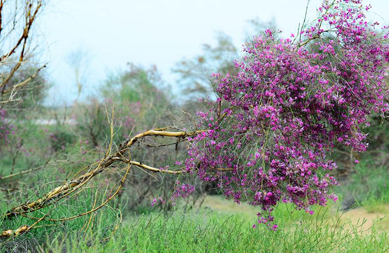 这里是沙生动植物的天堂,生态保护区内有沙枣树、虫实、沙蒿等植物。如果有幸您还能看见斑翅山鹑、稚鸡、野兔、草原沙蜥、白条锦蛇等野生动物。因沙枣树开花时清香而不腻,生命力极其顽强,每年的5月下旬,景区通过举办“沙枣花香节”,让更多的游客来到这里,赏花、闻香,在清香的环境中游玩。生态保护区内最具代表性的植物要属花棒,每年的七到十月份开花,形状为粉色小花朵。是景区内一道靓丽的风景。