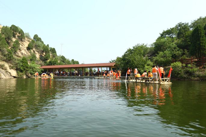 距清凉谷景区入口约2公里处,水域面积达一万多平米,最深处超过8米,清凉湖由山泉瀑布汇聚而成,四面环山、绿水白云、山花倒映,恰似一颗碧绿的宝石镶嵌在景区的最中央。在清凉湖的东岸建有游船,竹筏乘坐。