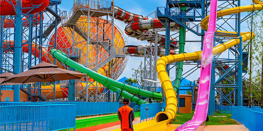 密闭式,敞开式滑道蜿蜒交错,堪称现实版的欢乐梦工厂。不仅可以极速盘旋,也可以温柔滑行,满足各个年龄段的速度要求。从高高的平台上俯冲而下,途中左旋右转,或急速下降,或惊险刺激,适合与水来一次亲密的接触。