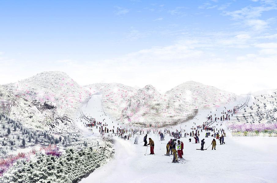 冬季积雪期为12月至次年2月,滑雪场共有3条雪道;高级道470米、中级道960米、初级道450米,总长1880米。