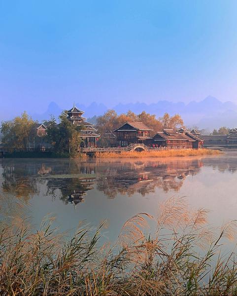 分水上游览和徒步观赏,水上的乘轻舟环绕湖光山色,田园村舍,过绿树丛林,又穿山而出,沿途可经原始形态等;徒步观赏的各少数民族建筑的一个缩影,鼓楼、风雨桥、对歌台、花楼、长廊、图腾等充分展示了各民族文化。