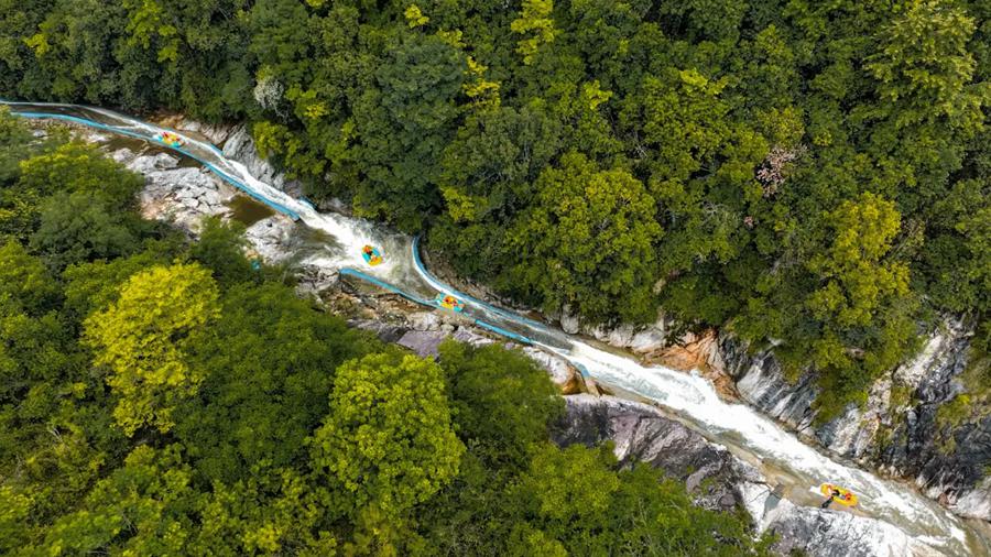 清见溪漂流,原名龙凤谷漂流,与大别川百里生态画廊紧密相连。峡谷两边丛山峻岭 ,林木茂盛,峡谷之中河道忽宽忽窄,流水忽急忽缓。漂时约90分钟,峡谷全长5.8公里,溪水之中有大小险滩22处,最大落差12.8米,最长滑道28米。