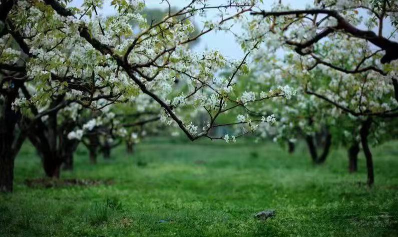 森蒲果园百亩梨花白似雪,谷雨后梨花、桃花、苹果花争相开放,一花一木,一息一刻,春阳弄光影,暖风吹枝轻,在温暖的春日里森蒲果园内仿佛世外桃源。