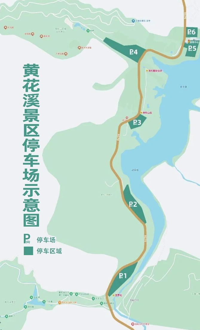 景区拥有6大停车场,共约5000个车位,从黄花溪景区往北依次;