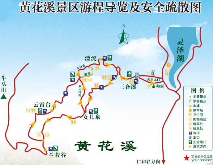 黄花溪景区游程导览及安全疏散图