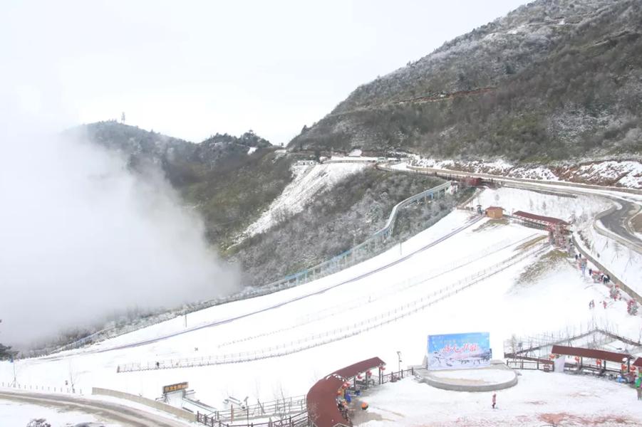 处于景区内第七台(杜鹃花游步道旁)最高处海拔约2200米,占地面积约20000平方,雪道长度约200米,坡度约20度一8度左右,有初级滑雪道,中级滑雪道、高级滑雪道,雪圈道、戏雪区等。
