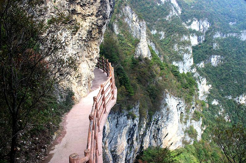 情人谷绝壁栈道 主要由“拜佛亭,仙人台、断肠崖、长寿松、情人谷、金蟾出洞、佛光天眼、天鹰展翅、无量卧佛、景观栈道”等。