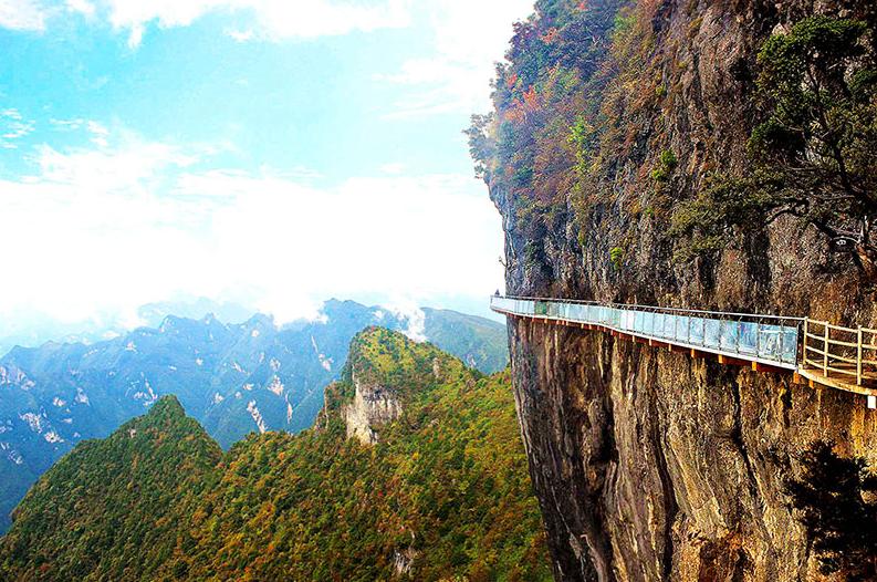 八台山玻璃栈道,与白石山(海拔约1900米,长约95米),张家界天门山(长约60米、海拔约1430 米)、丹东凤凰山(长约31米、海拔约700多米)的悬空玻璃栈道相比,将位列国内玻璃前列。