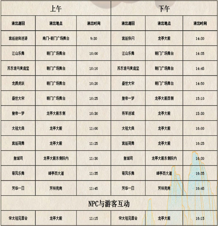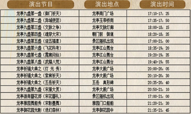 节目时间表,请以当日景区公告为准