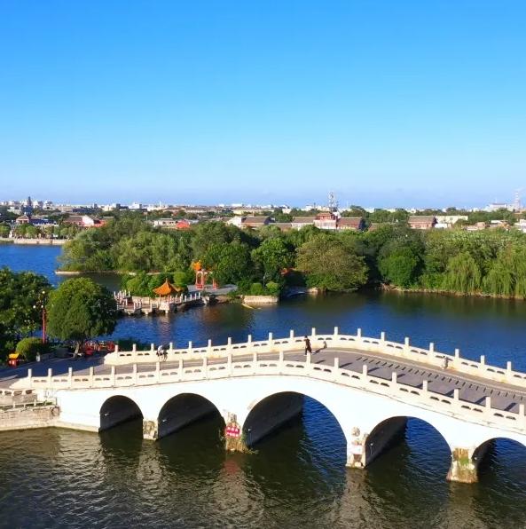 东侧潘家湖(浑浊),西侧杨家湖(清澈),两湖相邻,一清一浊,形成明显对比。可乘船游览,从水上视角欣赏龙亭建筑群。