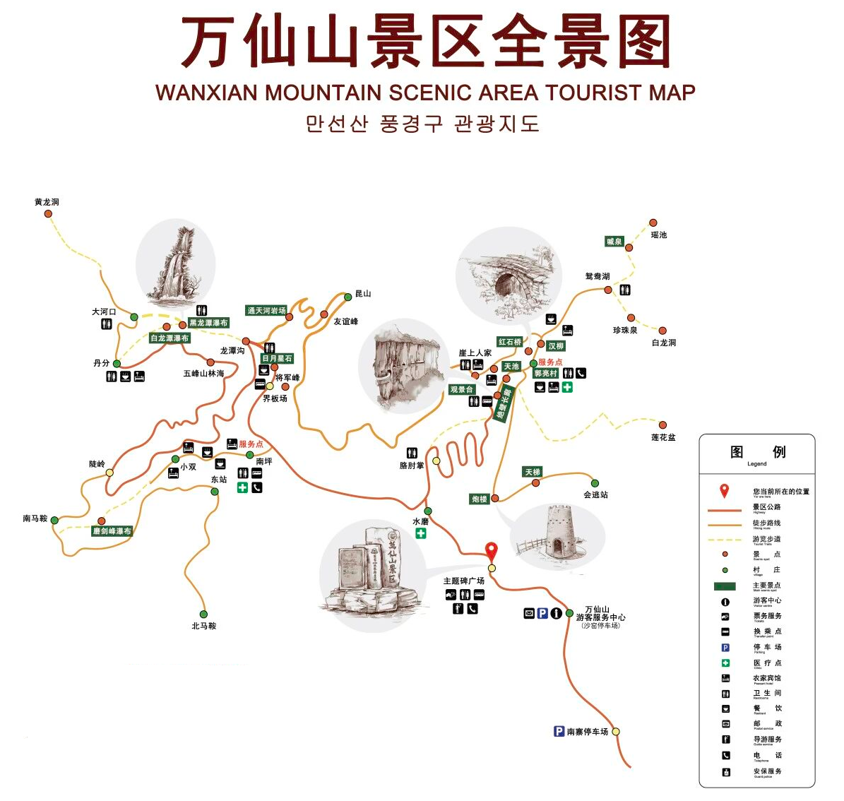 万仙山景区,总面积约64平方公里,海拔高约1672米。万仙山景区以雄奇险秀的自然风光著称,拥有典型的北方喀斯特地貌特征。景区内峡谷幽深、悬崖陡峭、瀑布壮观、溶洞神秘、森林茂密,集多种自然景观于一体。万仙山景区景点如红岩绝壁大峡谷、绝壁长廊(郭亮洞)、黑龙潭瀑布、五峰山林海、天池、莲花盆、白龙洞、喊泉、日月星石、将军峰、七郎峰等200余处自然与人文景观,每一处都独具特色。徒步郭亮挂壁公路,指尖触碰的是岩壁上的岁月凿痕,眼前铺开的是红岩绝壁的巍峨壮阔。在郭亮挂壁公路的日升月落间,是白天徒步绝壁长廊的酣畅舒爽,是夜晚饭后漫步山崖的悠然惬意。