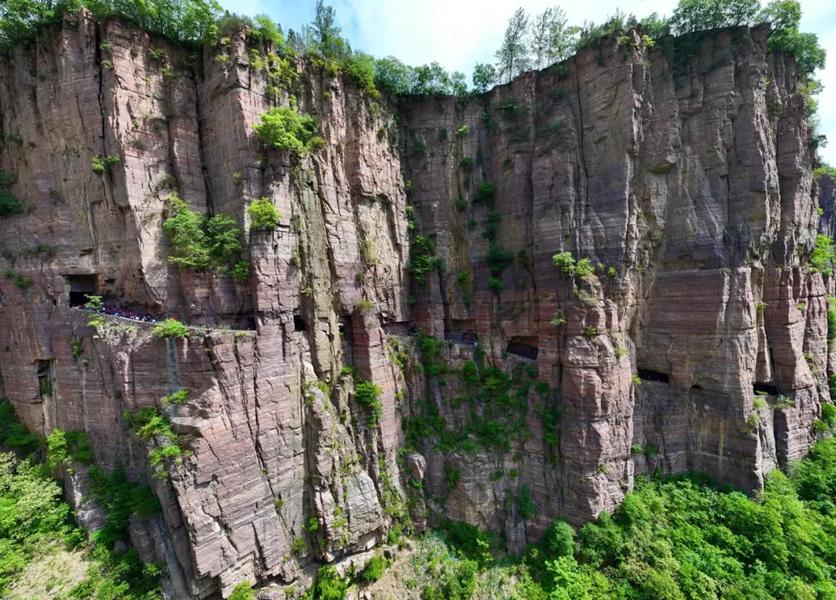 徒步郭亮挂壁公路:在红岩绝壁间感受人力与自然的震撼碰撞,郭亮挂壁公路的凿痕里,藏着穿崖而过的风,天窗外是垂直的丹崖,风里裹着草木香,比空调风更沁脾。
