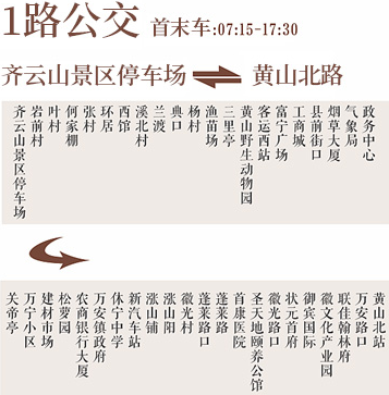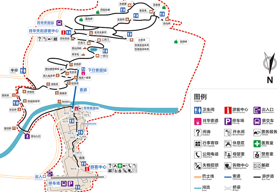 C线:月华素道站、飞云亭、望仙楼、梦真桥、栖真岩、寿字岩、一天门、真仙洞府、象鼻岩、二天门、三天门、天官府、月华天街、玄天太素宫、小壶天、玉虚宫、五老峰、紫云关、方腊寨、丹霞长廊、高峰、月华天街游客中心(乘坐景交车下山)