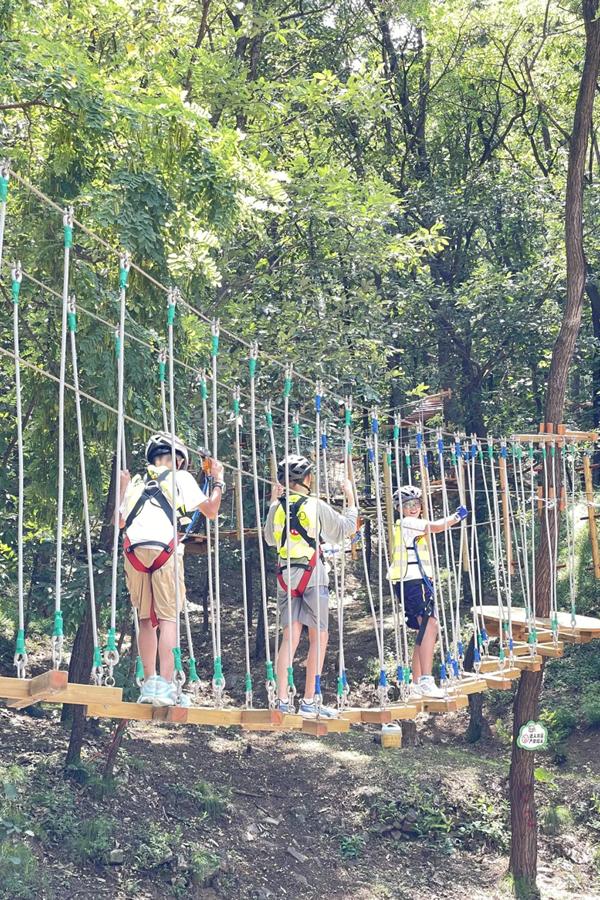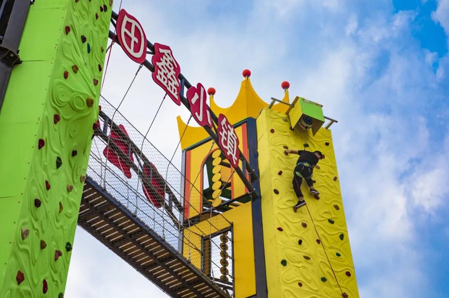 田鑫小镇亲子乐园区有 60 多种无动力设施,契合孩子爱玩儿、爱攀爬的天性,多样拓展项目助力孩子释放天性、挥洒汗水。木屋搭建中,孩子化身小小设计师,尽显奇思妙想;木片画项目,让孩子享受随心涂鸦的纯粹快乐。