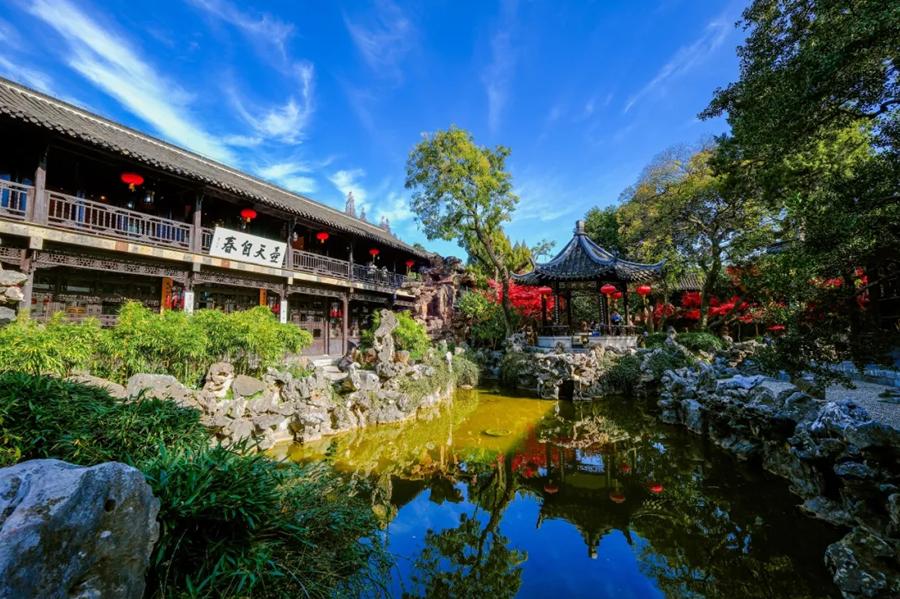 明媚的山茶花,用一抹抹鲜艳的色彩,点缀着园林的每一个角落,将古典的雅致与现代的生命力完美融合。